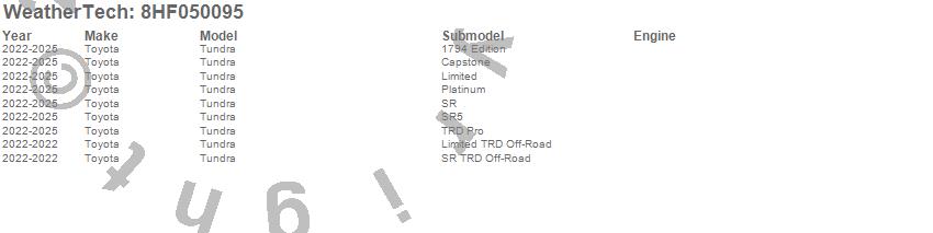 Brand: WeatherTechPart Number: 8HF050095Tonneau Cover Type: UPC: 787765213165