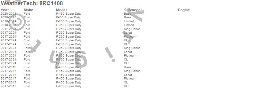 Below is an abbreviated list of applications for the WeatherTech Roll Up Truck Bed Cover.F-250 Super Duty, F-350 Super Duty, F-450 Super Duty, F450 Super Duty, Ford, 2026, 2025, 2024, 2023, 2022, 2021, 2020, 2019, 2018, 2017