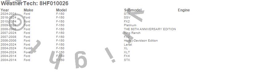 Brand: WeatherTechPart Number: 8HF010026Tonneau Cover Type: UPC: 787765431927