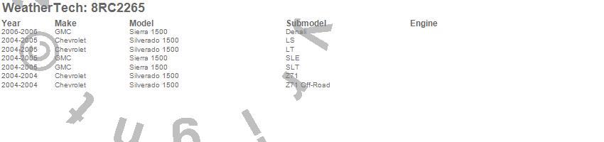 Below is an abbreviated list of applications for the WeatherTech Roll Up Truck Bed Cover.Sierra 1500, Silverado 1500, Silverado 1500 Classic, Chevrolet, GMC, 2007, 2006, 2005, 2004