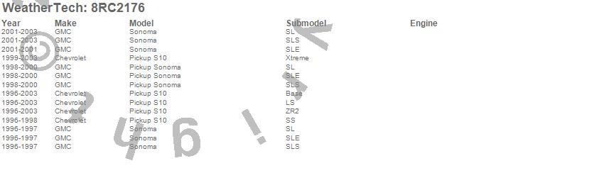 Below is an abbreviated list of applications for the WeatherTech Roll Up Truck Bed Cover.S10 Pickup, Sonoma, Chevrolet, GMC, 2003, 2002, 2001, 2000, 1999, 1998, 1997, 1996