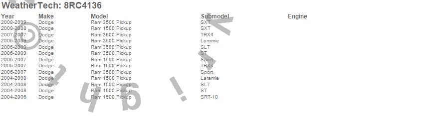 Below is an abbreviated list of applications for the WeatherTech Roll Up Truck Bed Cover.Ram 1500, Ram 2500, Ram 3500, Dodge, 2009, 2008, 2007, 2006, 2005, 2004, 2003