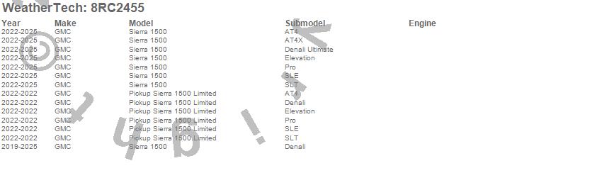 Below is an abbreviated list of applications for the WeatherTech Roll Up Truck Bed Cover.Pickup Sierra 1500 Limited, Sierra 1500, GMC, 2025, 2024, 2023, 2022, 2021, 2020, 2019