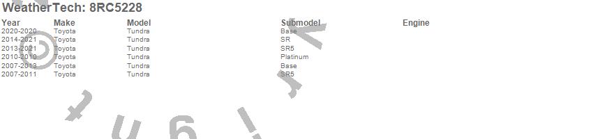 Below is an abbreviated list of applications for the WeatherTech Roll Up Truck Bed Cover.Tundra, Toyota, 2021, 2020, 2019, 2018, 2017, 2016, 2015, 2014, 2013, 2012, 2011, 2010, 2009, 2008, 2007