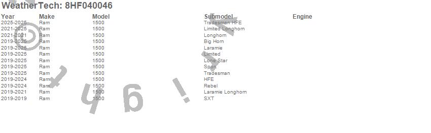 Brand: WeatherTechPart Number: 8HF040046Tonneau Cover Type: UPC: 787765392679