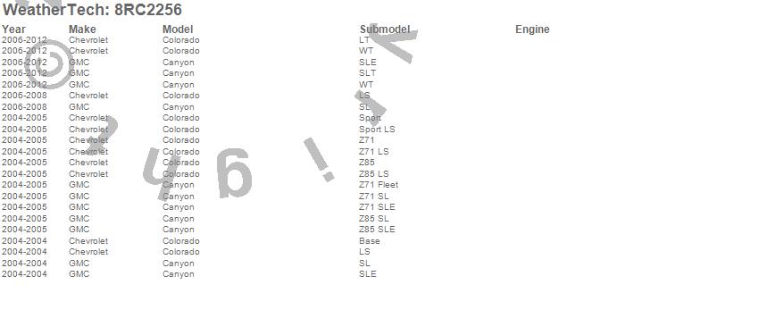 Below is an abbreviated list of applications for the WeatherTech Roll Up Truck Bed Cover.Canyon, Colorado, i-280, i-290, i-370, Chevrolet, GMC, Isuzu, 2012, 2011, 2010, 2009, 2008, 2007, 2006, 2005, 2004