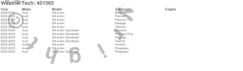 Below is an abbreviated list of applications for the Cargo Liner.Q4 e-tron, Q4 e-tron Sportback, Audi, 2025, 2024, 2023, 2022