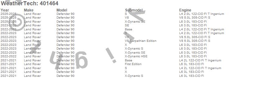 Below is an abbreviated list of applications for the Cargo Liner.Defender 90, Land Rover, 2025, 2023, 2022, 2021