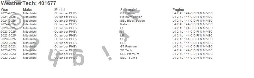 Below is an abbreviated list of applications for the Cargo Liner.Outlander PHEV, Mitsubishi, 2025, 2024, 2023