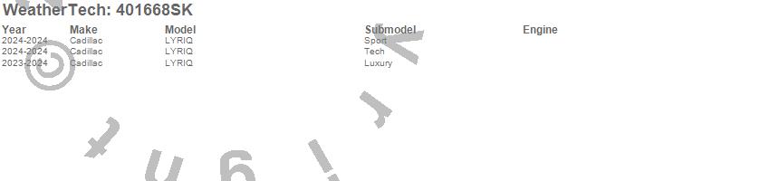 Below is an abbreviated list of applications for the Cargo Liner w/Bumper Protector.LYRIQ, LYRIQ-V, Cadillac, 2026, 2025, 2024, 2023