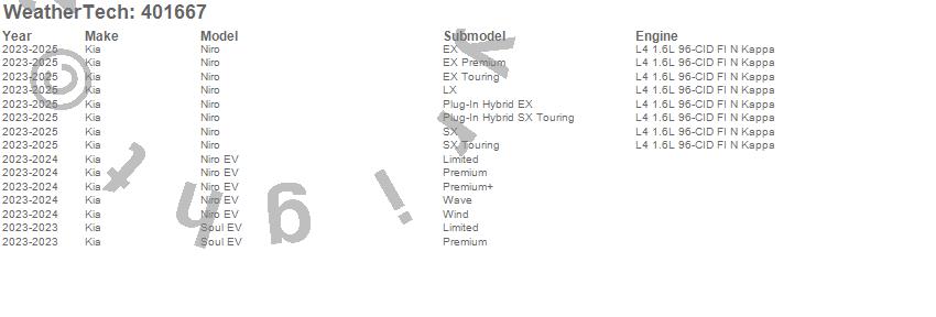 Below is an abbreviated list of applications for the Cargo Liner.Niro, Niro EV, Soul EV, Kia, 2025, 2024, 2023