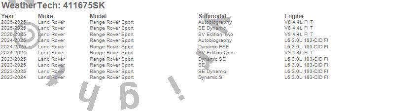 Below is an abbreviated list of applications for the Cargo Liner w/Bumper Protector.Range Rover Sport, Land Rover, 2025, 2024, 2023