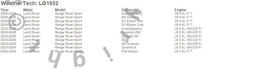 Below is an abbreviated list of applications for the LampGard.Range Rover Sport, Land Rover, 2025, 2024, 2023