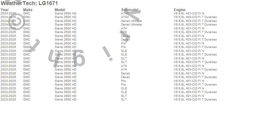 Below is an abbreviated list of applications for the LampGard.Sierra 2500 HD, Sierra 3500 HD, GMC, 2025, 2024, 2023