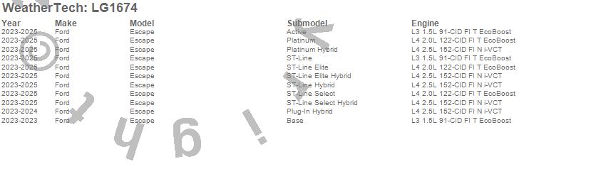 Below is an abbreviated list of applications for the LampGard.Escape, Ford, 2026, 2025, 2024, 2023