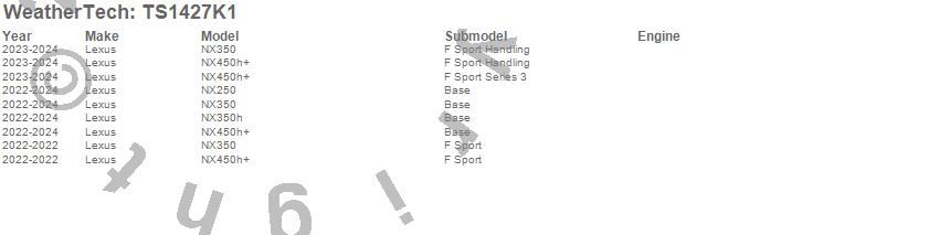 Below is an abbreviated list of applications for the WeatherTech SunShade Full Vehicle Kit.NX250, NX350, NX350h, NX450h+, Lexus, 2024, 2023, 2022