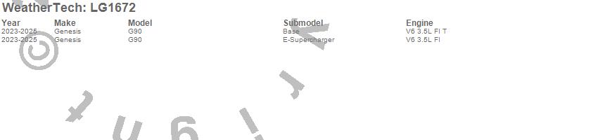 Below is an abbreviated list of applications for the LampGard.G90, Genesis, 2025, 2024, 2023
