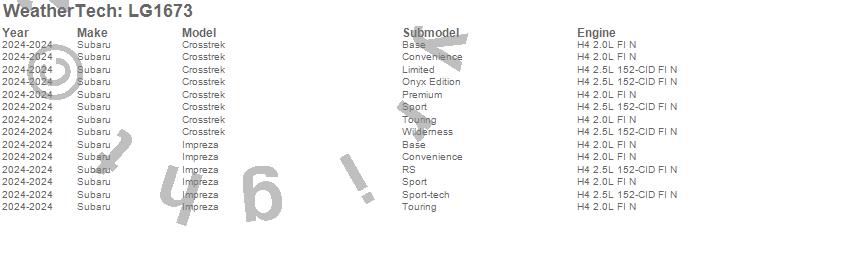 Below is an abbreviated list of applications for the LampGard.Crosstrek, Impreza, Subaru, 2026, 2025, 2024