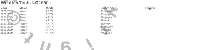 Below is an abbreviated list of applications for the LampGard.ARIYA, Nissan, 2025, 2024, 2023