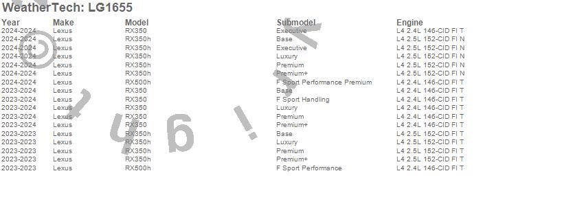 Below is an abbreviated list of applications for the LampGard.RX350, RX350h, RX450h+, RX500h, Lexus, 2026, 2025, 2024, 2023