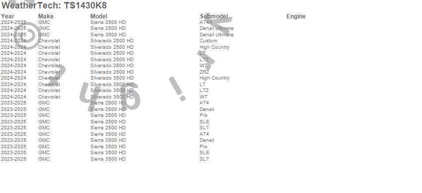 Below is an abbreviated list of applications for the WeatherTech SunShade Full Vehicle Kit.Sierra 2500 HD, Sierra 3500 HD, Silverado 2500 HD, Silverado 3500 HD, Chevrolet, GMC, 2026, 2025, 2024, 2023
