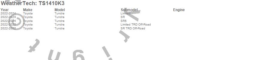 Below is an abbreviated list of applications for the WeatherTech SunShade Full Vehicle Kit.Tundra, Toyota, 2024, 2023, 2022
