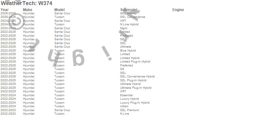 Below is an abbreviated list of applications for the All Weather Floor Mats.Santa Cruz, Tucson, Hyundai, 2025, 2024, 2023, 2022