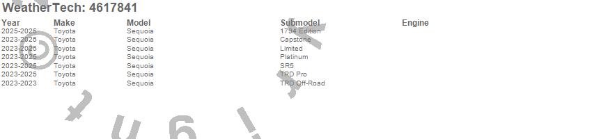 Below is an abbreviated list of applications for the FloorLiner DigitalFit.Sequoia, Toyota, 2026, 2025, 2024, 2023