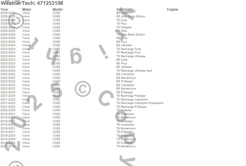 Below is an abbreviated list of applications for the FloorLiner HP.XC60, XC90, Volvo, 2026, 2025, 2024, 2023, 2022, 2021, 2020, 2019, 2018