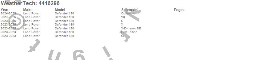 Below is an abbreviated list of applications for the FloorLiner DigitalFit.Defender 130, Land Rover, 2025, 2024, 2023
