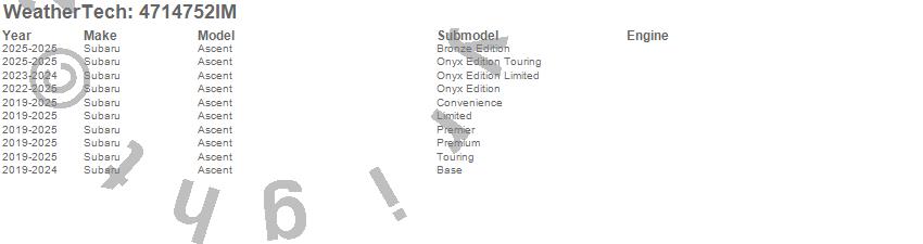 Below is an abbreviated list of applications for the FloorLiner HP.Ascent, Subaru, 2025, 2024, 2023, 2022, 2021, 2020, 2019