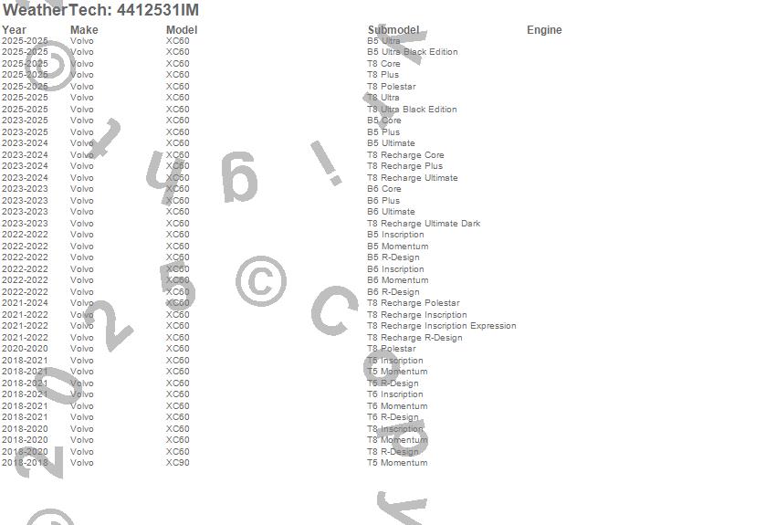 Below is an abbreviated list of applications for the FloorLiner HP.XC60, Volvo, 2026, 2025, 2024, 2023, 2022, 2021, 2020, 2019, 2018