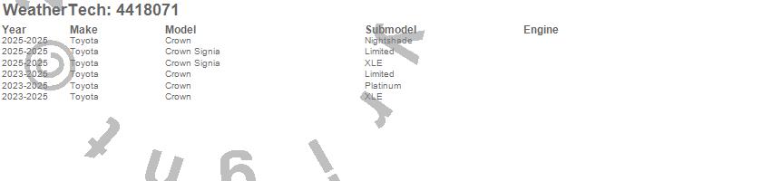 Below is an abbreviated list of applications for the FloorLiner DigitalFit.Crown, Crown Signia, Toyota, 2025, 2024, 2023