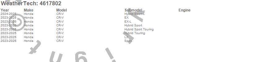 Below is an abbreviated list of applications for the FloorLiner DigitalFit.CR-V, Honda, 2026, 2025, 2024, 2023