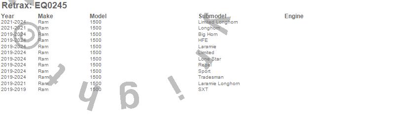 Below is an abbreviated list of applications for the Retrax EQ Retractable Tonneau Cover.1500, Ram, 2024, 2023, 2022, 2021, 2020, 2019