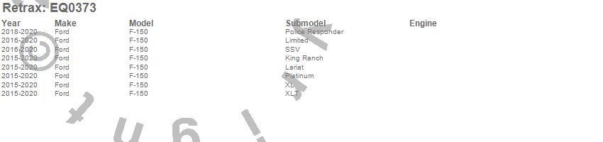 Below is an abbreviated list of applications for the Retrax EQ Retractable Tonneau Cover.F-150, Ford, 2020, 2019, 2018, 2017, 2016, 2015