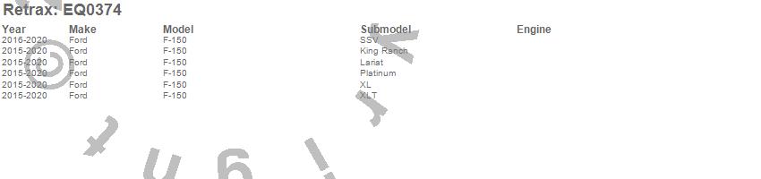 Below is an abbreviated list of applications for the Retrax EQ Retractable Tonneau Cover.F-150, Ford, 2020, 2019, 2018, 2017, 2016, 2015