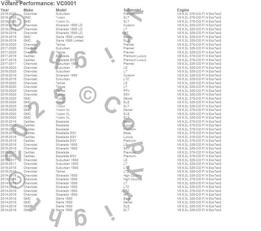 Below is an abbreviated list of applications for the Oil Catch Can Kit.Escalade, Escalade ESV, Sierra 1500, Sierra 1500 Limited, Silverado 1500, Silverado 1500 LD, Suburban, Suburban 1500, Tahoe, Yukon, Yukon XL, Cadillac, Chevrolet, GMC, 2020, 2019, 2018, 2017, 2016, 2015