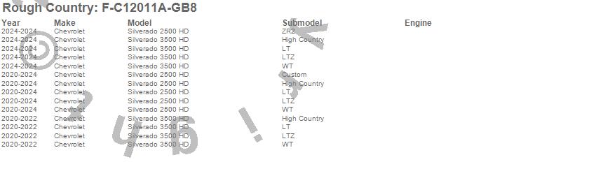 Below is an abbreviated list of applications for the Pocket Fender Flares.Silverado 2500 HD, Silverado 3500 HD, Chevrolet, 2025, 2024, 2023, 2022, 2021, 2020