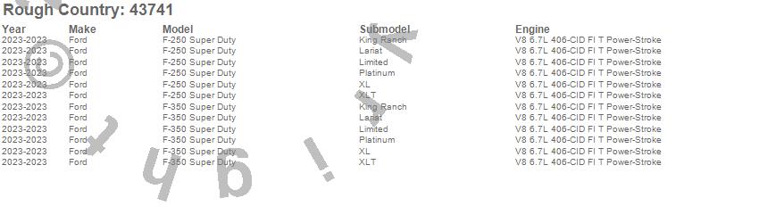 Below is an abbreviated list of applications for the Suspension Lift Kit w/Shocks.F-250 Super Duty, F-350 Super Duty, Ford, 2025, 2024, 2023