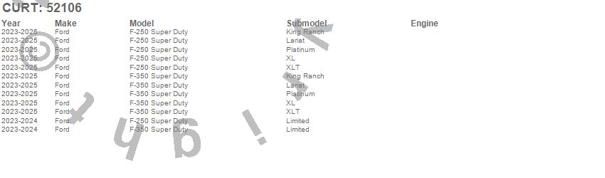 Below is an abbreviated list of applications for the Towed-Vehicle RV Harness.F-250 Super Duty, F-350 Super Duty, Ford, 2025, 2024, 2023