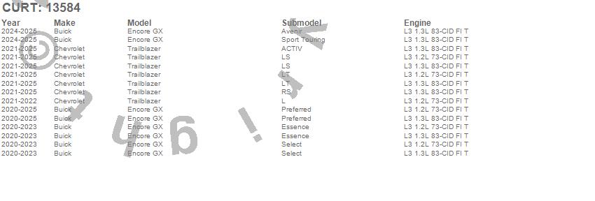 Below is an abbreviated list of applications for the Class III 2 in. Receiver Hitch.Encore GX, Trailblazer, Buick, Chevrolet, 2026, 2025, 2024, 2023, 2022, 2021, 2020