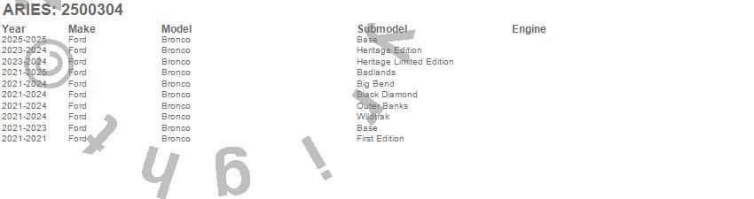 Below is an abbreviated list of applications for the Tubular Fender Flare.Bronco, Ford, 2025, 2024, 2023, 2022, 2021