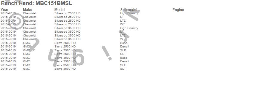 Brand: Ranch HandPart Number: MBC151BMSLBumper- Rear Type: Carbon SteelUPC: 848917009897