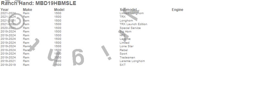 Brand: Ranch HandPart Number: MBD19HBMSLEBumper- Rear Type: Carbon Steel - w/Rear ExhaustUPC: 848917009880