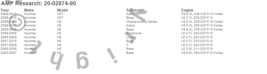 Below is an abbreviated list of applications for the PowerStep.H2, H3, H3T, Hummer, 2010, 2009, 2008, 2007, 2006, 2005, 2004, 2003