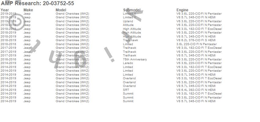 Below is an abbreviated list of applications for the PowerStep.Grand Cherokee (WK2), Jeep, 2019, 2018, 2017, 2016, 2015, 2014