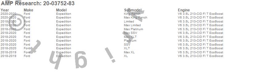 Below is an abbreviated list of applications for the PowerStep.Expedition, Ford, 2020, 2019, 2018