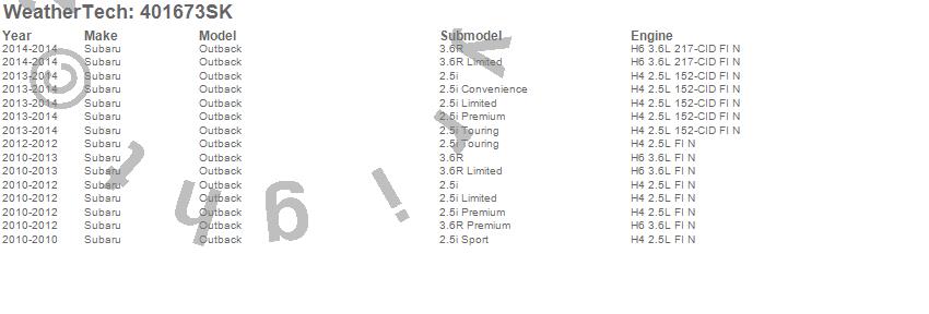 Below is an abbreviated list of applications for the Cargo Liner w/Bumper Protector.Outback, Subaru, 2014, 2013, 2012, 2011, 2010