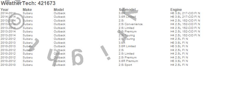 Below is an abbreviated list of applications for the Cargo Liner.Outback, Subaru, 2014, 2013, 2012, 2011, 2010